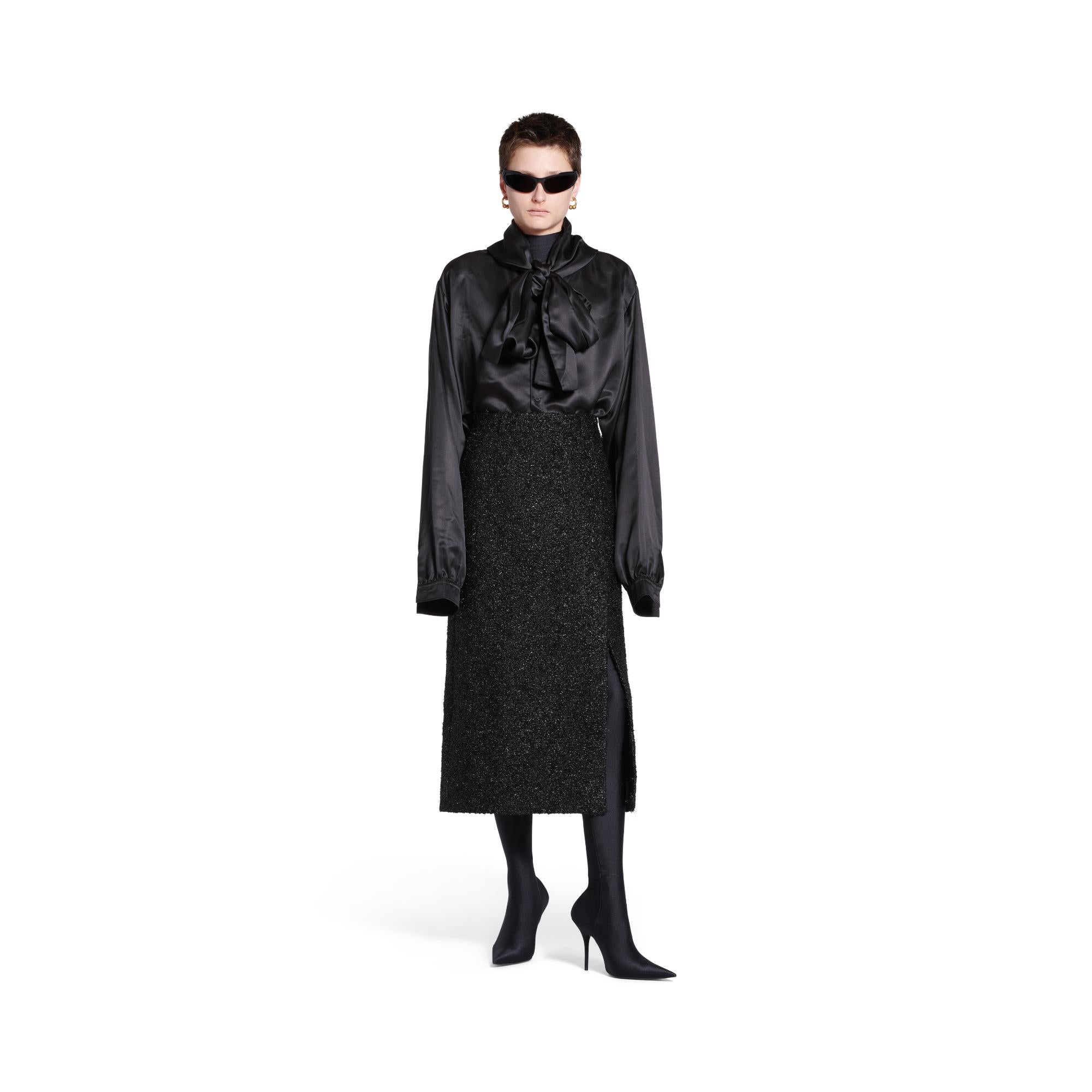 Women Slit Tailored Skirt - Black