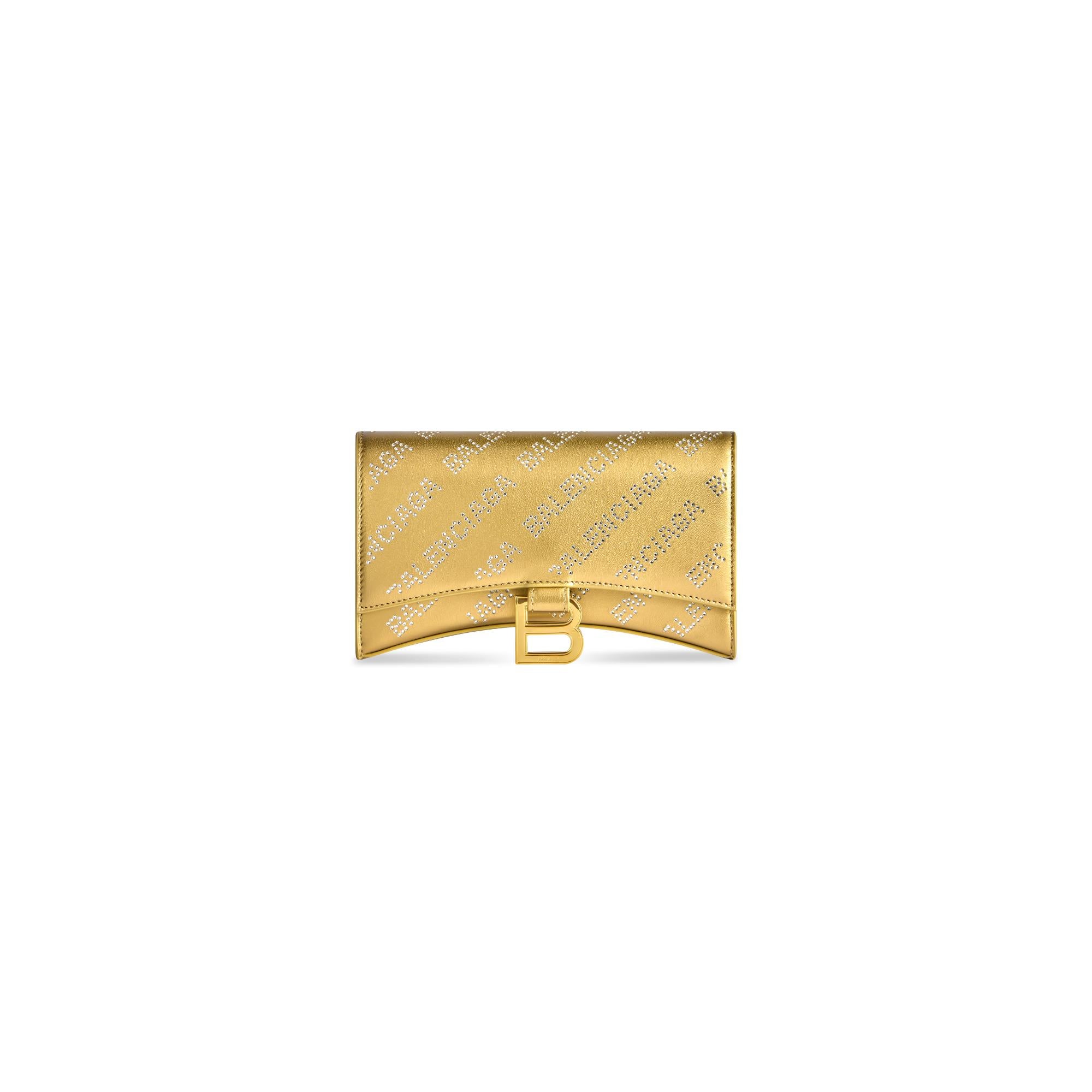 Women Hourglass Wallet W/Chain - Light Gold/W Crystal